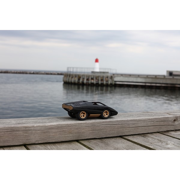 Maak kennis met de elegante kracht van de Playforever UFO Cannone! Deze zwarte raceauto ademt futurisme met zijn stijlvolle, gestroomlijnde vormgeving en subtiele details. Zowel speelgoed en designobject: voor jong en oud! De auto is gemaakt van robuust kunststof en rubberen banden zorgen voor duurzaam speelplezier, terwijl de glanzende afwerking hem een luxe uitstraling geeft. Of je hem nu laat racen of tentoonstelt op je bureau, de Cannone is een tijdloos icoon voor snelheidsliefhebbers van alle leeftijden.